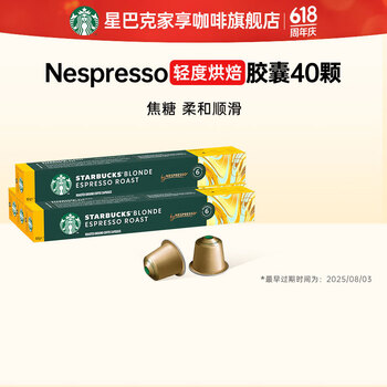 星巴克(Starbucks) Nespresso胶囊咖啡冷萃美式浓缩黑咖啡特选咖啡粉 轻度 轻度烘焙40颗(顺滑,焦糖)25年8月到期