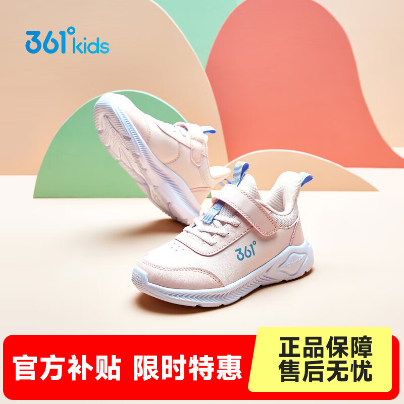 361°童鞋男女童运动休闲跑鞋年春季新款轻便软底小童鞋子 【皮革】玫瑰水粉色/黛粉色 29