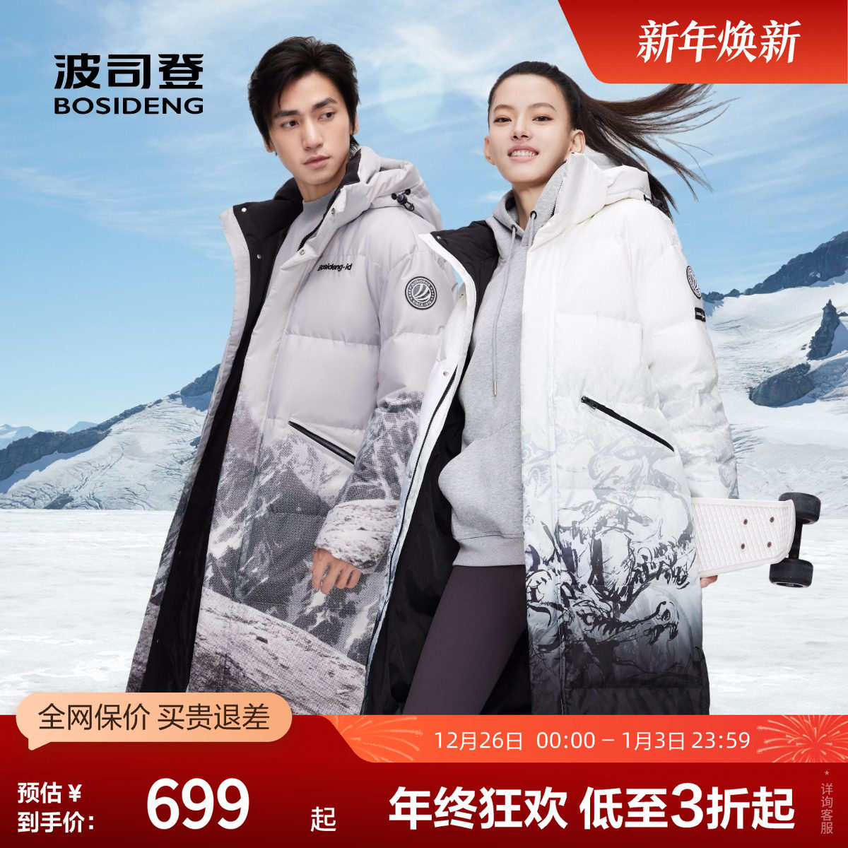 【推荐】 波司登羽绒服男女同款保暖羽绒服冬季红色外套