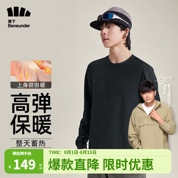 蕉下(beneunder)长袖T恤男士上衣打底衫秋冬新品高弹可外穿EL15423 漫暮黑 175/96A(L)