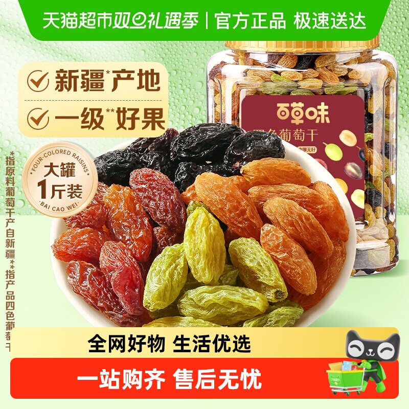 百草味四色葡萄干大罐装免洗新疆特产蜜饯零食一级果干即食