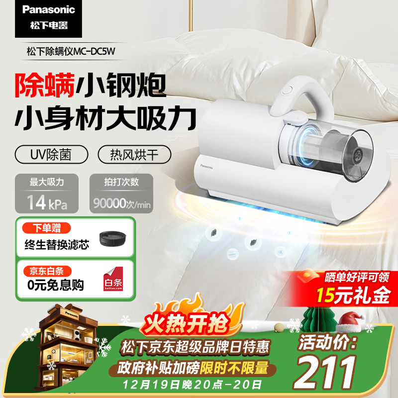 松下(Panasonic)【国家补贴】除螨仪床宝吸猫毛除螨虫一体机床上吸尘器大吸力紫外线杀菌热烘除湿团购礼品MC-DC5G