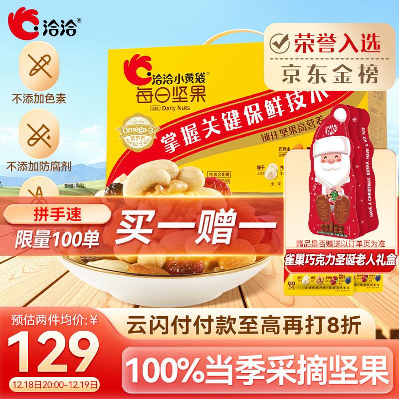 洽洽小黄袋每日坚果750g/30袋混合干果腰果儿童孕妇零食坚果礼盒恰恰