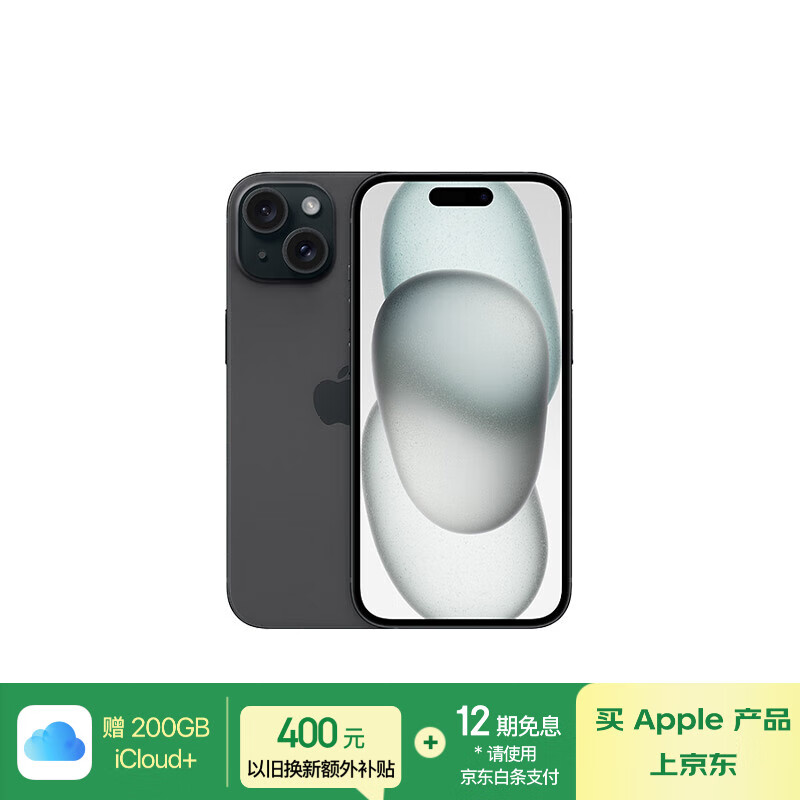 Apple/苹果【赠送200G iCloud】 iPhone 15 (A3092) 128GB 黑色 支持移动联通电信5G 双卡双待手机