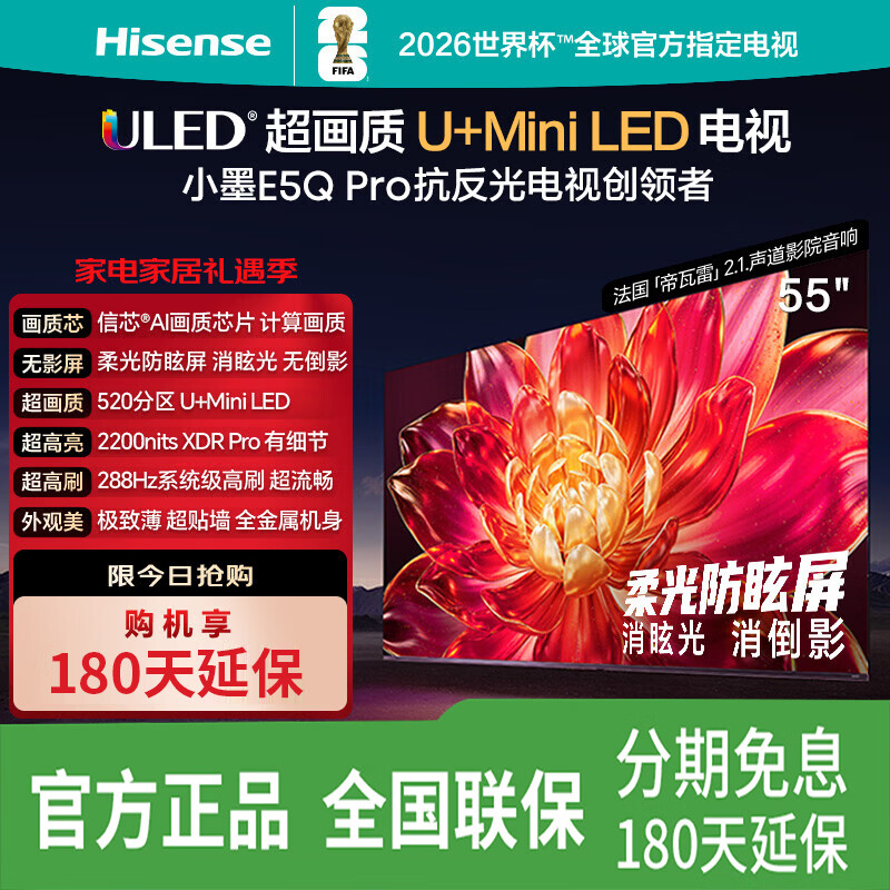 海信小墨E5Q Pro 55英寸 超画质U+Mini LED 信芯芯片 柔光防眩屏 288Hz高刷 E5NPRO升级 55英寸