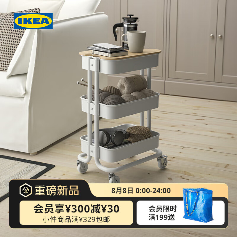 宜家(IKEA)拉斯克家居小推车置物架厨房储物架客厅大容量储物收纳架 白色28x38x61cm