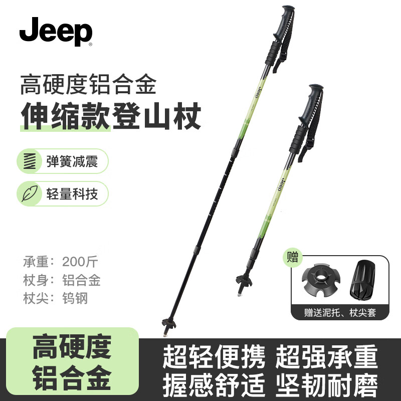 JEEP登山杖户外徒步登山可伸缩多功能手杖轻盈耐用四季通用老人吉普 【内锁减震款】绿色