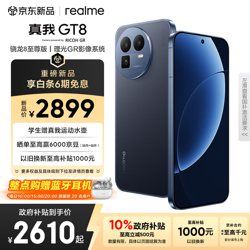 realme真我GT8 骁龙8至尊版 电竞独显芯片 2K 144Hz高刷直屏 5000万潜望长焦 电竞游戏学生手机12+256蓝