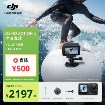 大疆 DJI Osmo Action 4 灵眸运动相机 摩托车骑行滑雪潜水户外vlog相机 OA4防抖拍摄 冲浪套装 官方标配 无内存卡