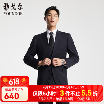 雅戈尔(YOUNGOR)西服男士050款上衣秋冬青年男套西上衣羊毛面料经典西服 藏青 L 175/96A