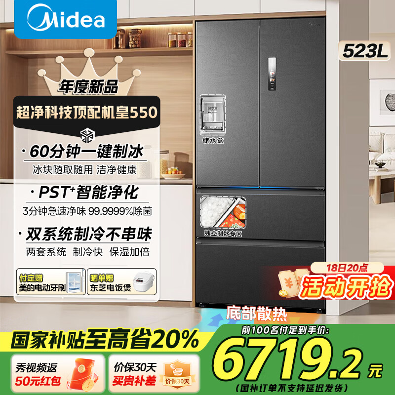 美的(Midea)M60机皇法式多门四门薄平嵌除菌大容量自动制冰一体机双系统双循环MR-550WUFIPZE 海贝黛