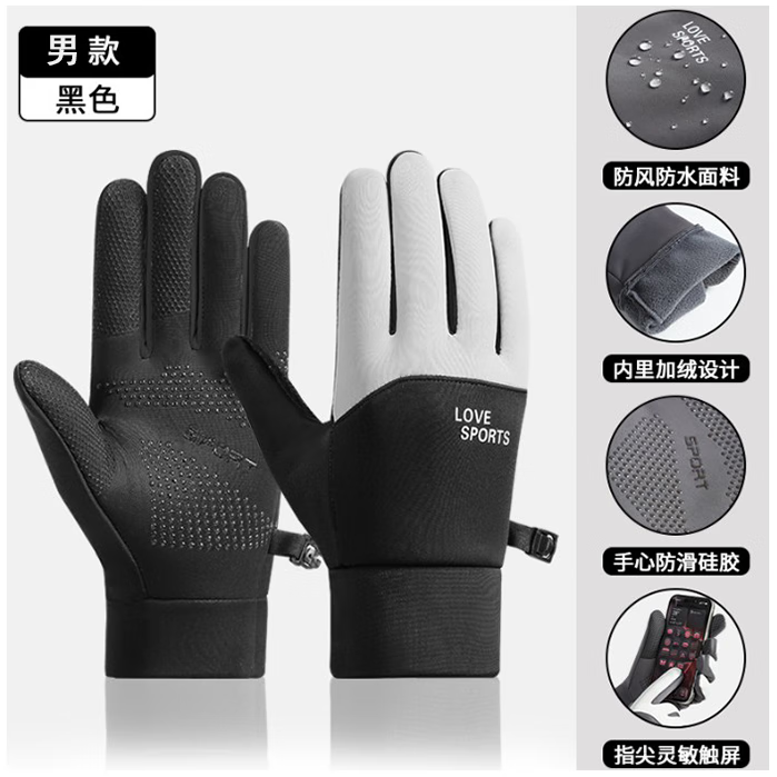 卫墨墨手套男冬季骑行保暖加绒加厚防水运动骑车女冬天防风御寒触屏手套 【黑+浅灰】-男款1双 无规格