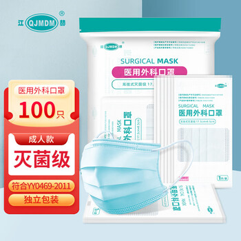 江赫 医用外科口罩100只/袋每只独立包装灭菌级 舒适透气不勒耳口罩 100只装