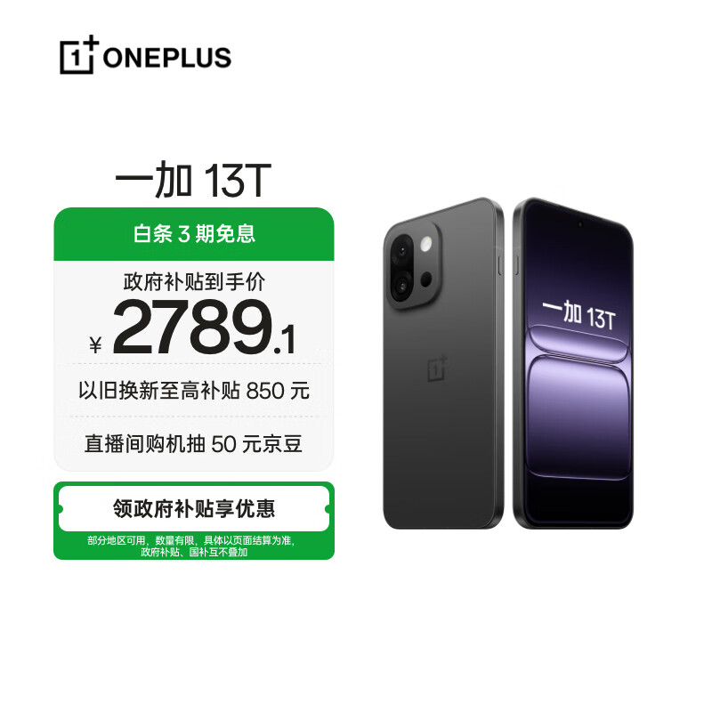 一加 13T 12GB+256GB 云墨黑 oppo 性能超强小直屏 骁龙 8 至尊版 冰川电池 AI 5G游戏拍照智能手机