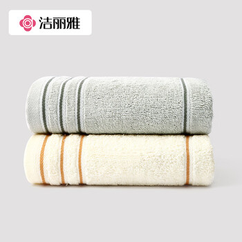 洁丽雅毛巾男士纯棉成人条纹速干吸水不掉毛全棉情侣家用洗澡巾擦脸面巾 米色+灰色80g 2条