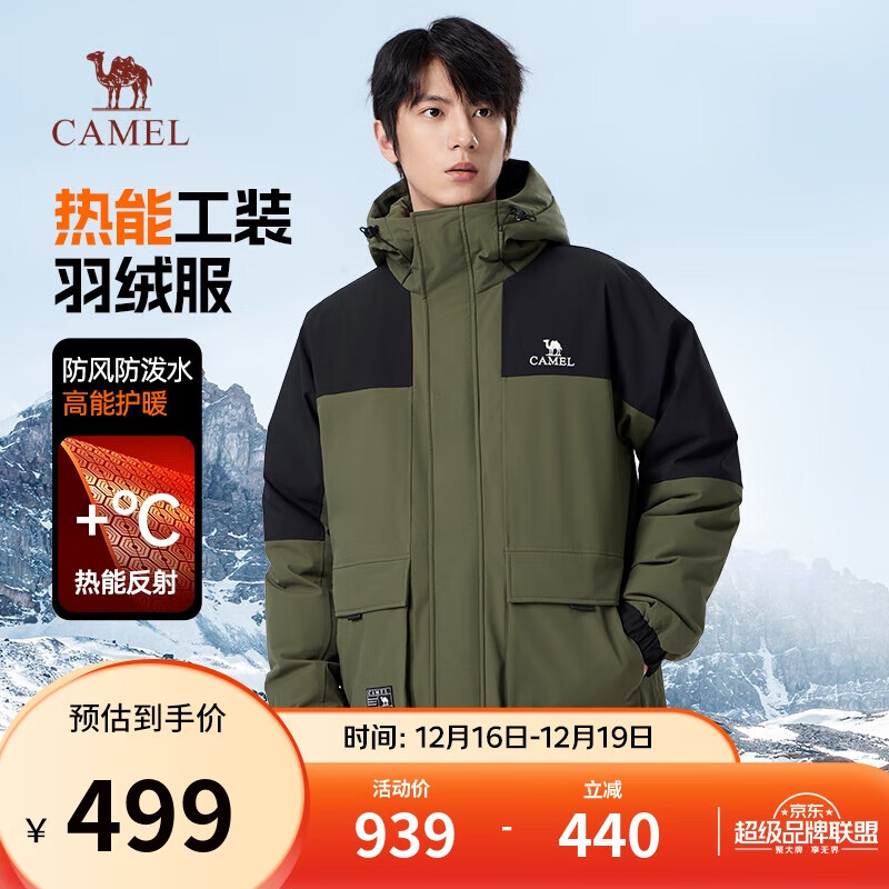 骆驼(CAMEL)男装工装羽绒服秋冬款加厚保暖连帽男女同款防寒外套M13CF00100A