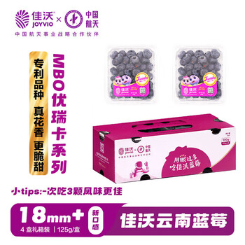 佳沃(joyvio)云南当季蓝莓MBO系列 18mm+大果 4盒装 约125g/盒 生鲜水果