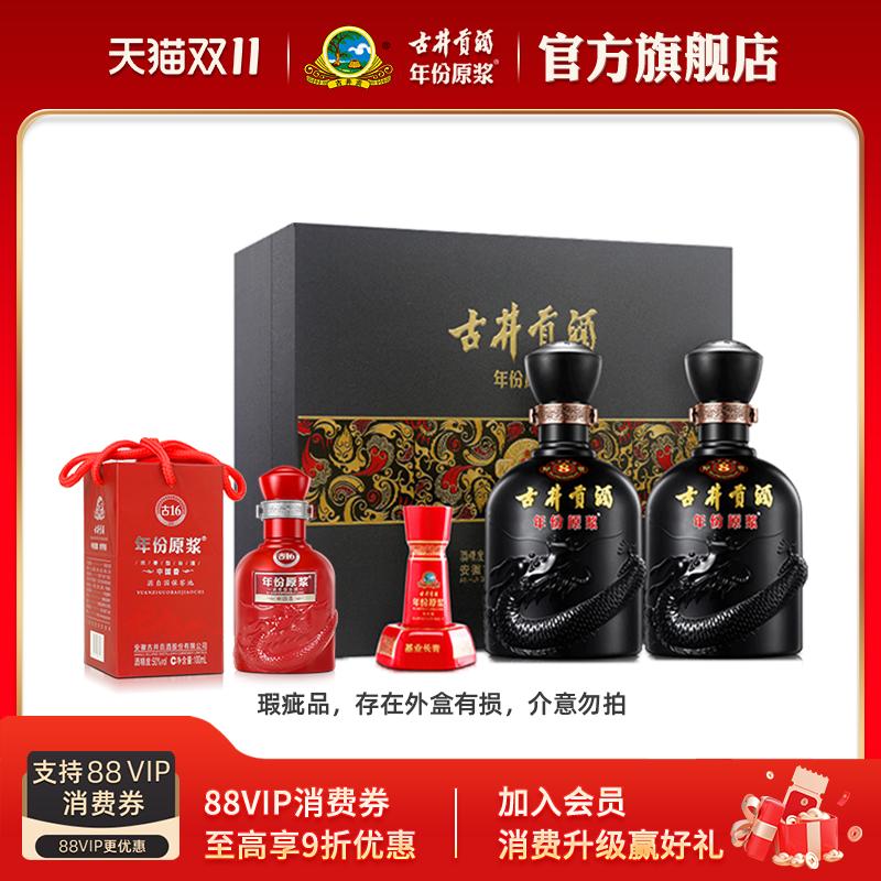 【钜惠组合】古井贡酒年份原浆50度古8礼盒+50度古16小酒 瑕疵品