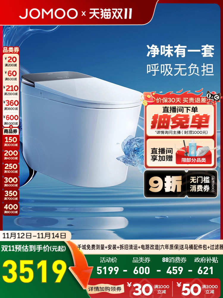 【百亿补贴】九牧净界Ultra香氛智能马桶全自动一体坐便器S860