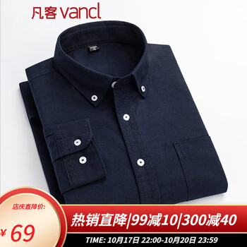 凡客诚品(VANCL)凡客vancl长袖衬衫男全棉领尖扣牛津纺商务休闲经典舒适衬衫 藏青 M