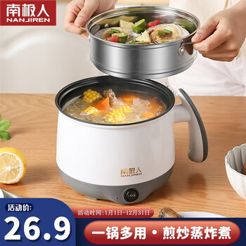 南极人 学生宿舍小电锅煮面神器家用多功能电煮锅迷你小型电热火锅1-2人 不沾锅款+7礼丨无蒸笼【多功能款】 1.8L