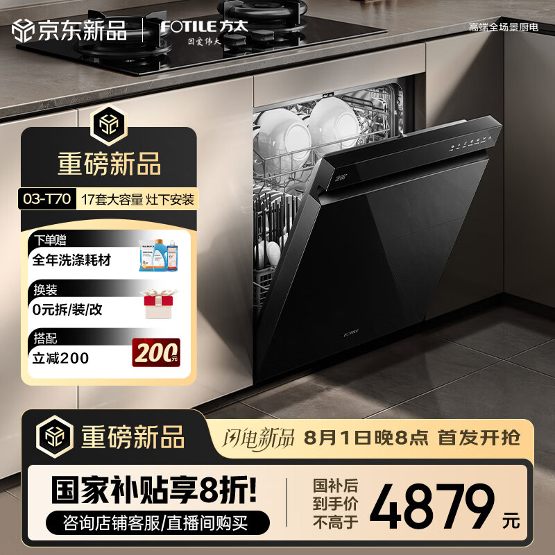 方太嵌入式洗碗机 17套大容量 灶下洗灵活安装 700mm黄金高度 100℃独立蒸汽消杀03-T70