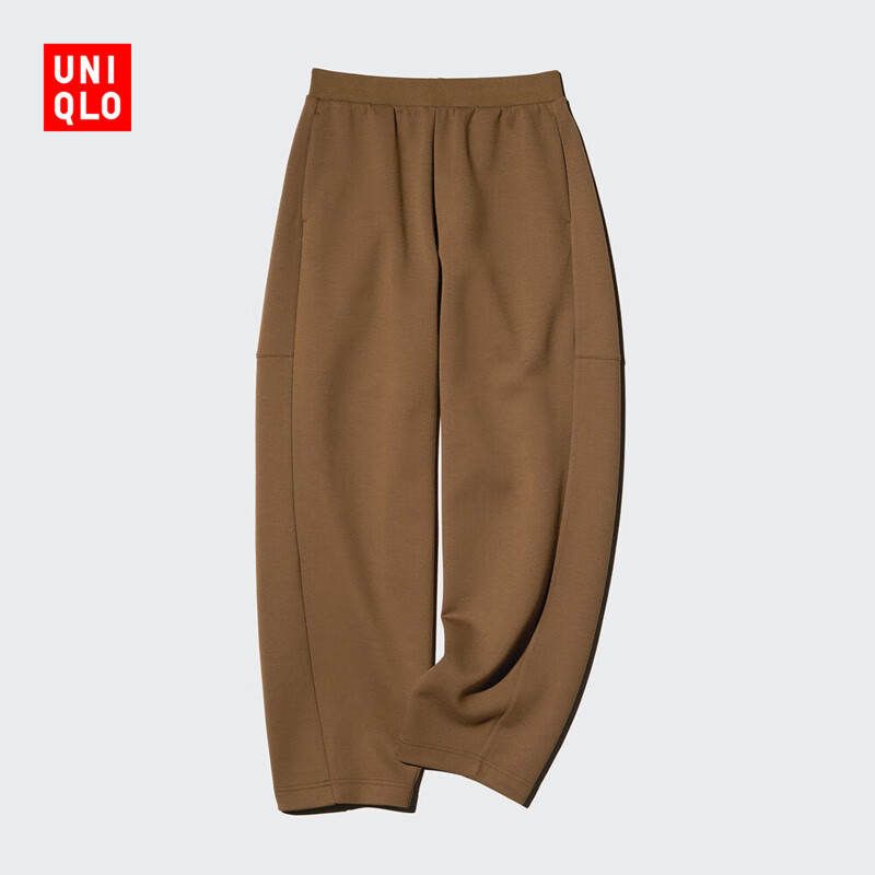 优衣库女装快干休闲廓形裤运动弯刀镰刀裤高腰速干新款479619 36 褐色 S /155/64A