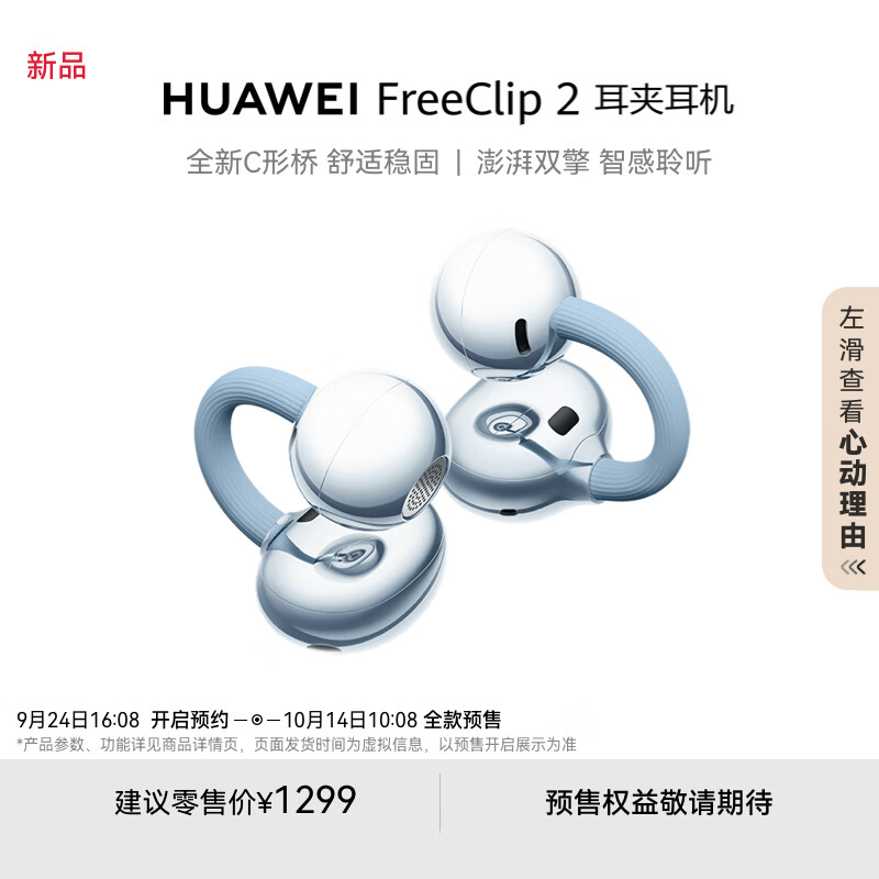 华为FreeClip 2 耳夹耳机 丹宁蓝开放式无线蓝牙耳机 全新C形桥 舒适稳固/澎湃双擎 智感聆听