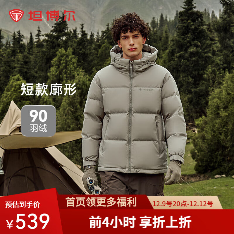 坦博尔【店长推荐】羽绒服男短款宽松休闲90绒连帽外套潮冬装TAF530353J 晴雾色 M (170) 170
