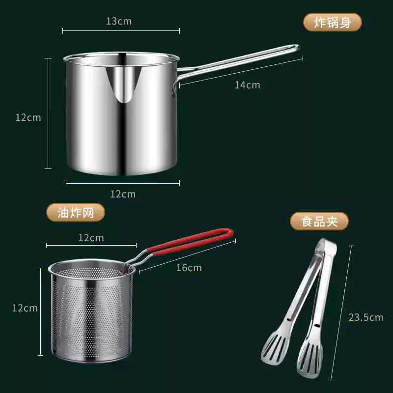 不锈钢油炸锅家用小油锅炸串锅带滤网电磁炉迷你省油小炸锅无涂层 小油炸锅+油炸篮+夹子 无规格
