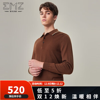 鄂尔多斯EMZ【可机洗系列】2023秋冬新款羊毛衫 19.5微米超细精仿打底衫男 棕色 185/100A/XXL