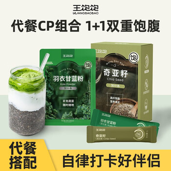 王饱饱羽衣甘蓝粉奇亚籽代餐搭配高膳食纤维自律饱腹0添加蔗糖 105g奇亚籽*1+35g羽衣甘蓝粉*1