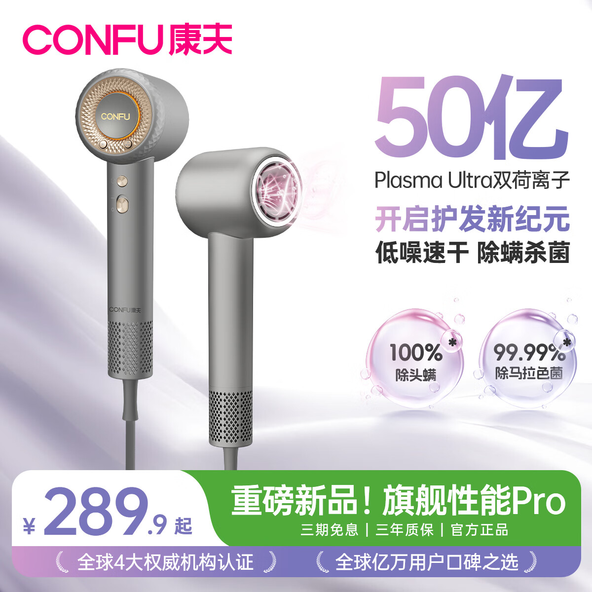 康夫(CONFU)高速电吹风机家用大功率50亿等离子速干护发除螨杀菌生日礼物送女友吹风筒F9 Pro钛空灰