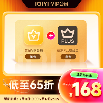 爱奇艺黄金VIP会员年卡加京东PLUS会员年卡
