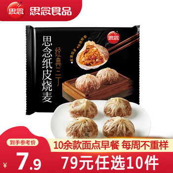 思念 早餐面点任选组合 加热即食方便 包子手抓饼烧麦馅饼馒头蒸饺 经典三丁纸皮烧麦240g