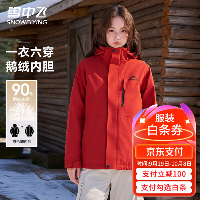 雪中飞鹅绒男士轻户外秋冬季休闲工装保暖户外防风连帽简约羽绒服外套 中国红|1215 3XL (190)