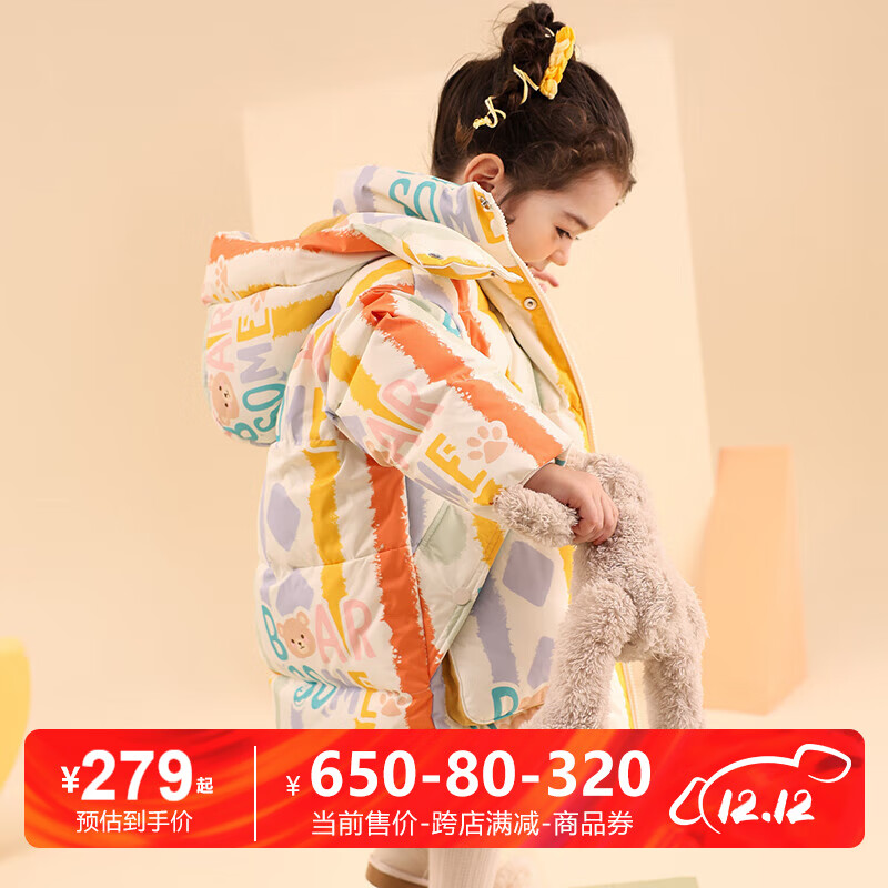 康博儿童小童宝宝女童羽绒服冬季中长款加厚2024新款女宝洋气童装外套 米白色 120