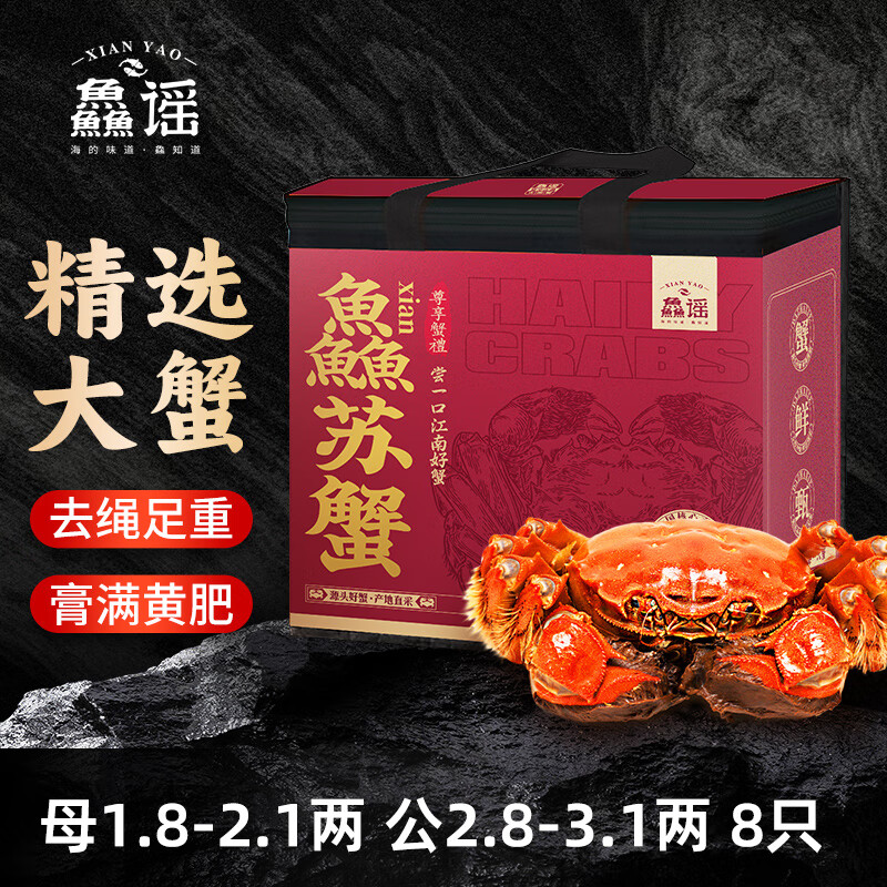 【活蟹】鱻谣大闸蟹鲜活螃蟹 公2.8-3.1两 母1.8-2.1两 4对8只 去绳足重 生鲜蟹类礼盒