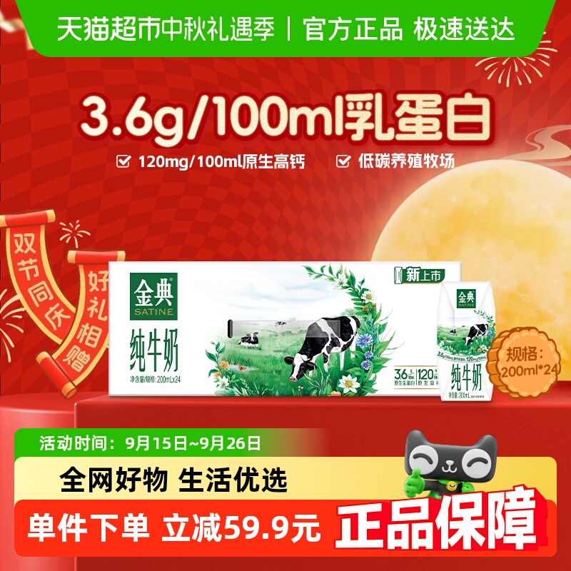 【中秋礼盒】伊利金典纯牛奶【200ml】*24盒整箱优质蛋白学生早餐