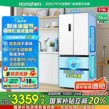 容声【国家补贴20%】518升双净双系统法式多门四开门冰箱一级能效风冷无霜节能大容量BCD-518WD15MPA白