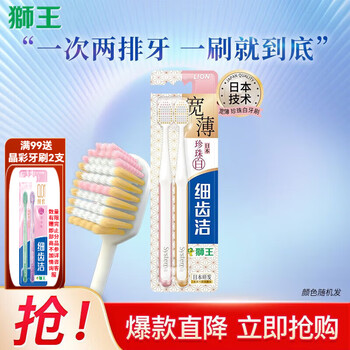 狮王(Lion)细齿洁宽薄火山炭宽头软毛牙刷日本研发成人深洁齿缝刷净智齿情侣 宽薄珍珠白牙刷* 2支 (两支/板*1)