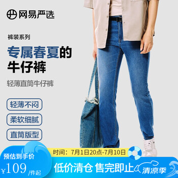网易严选舒弹大师牛仔裤男式基础直筒牛仔裤亲肤弹力舒适透气黑色裤子 D款-轻薄复古款-牛仔中蓝 32 (L)