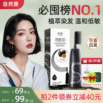韩金靓易梳彩染发剂植物遮白发染发膏自己在家染不沾头皮染发梳男女士 自然黑 180ml*1盒 【可盖白发】