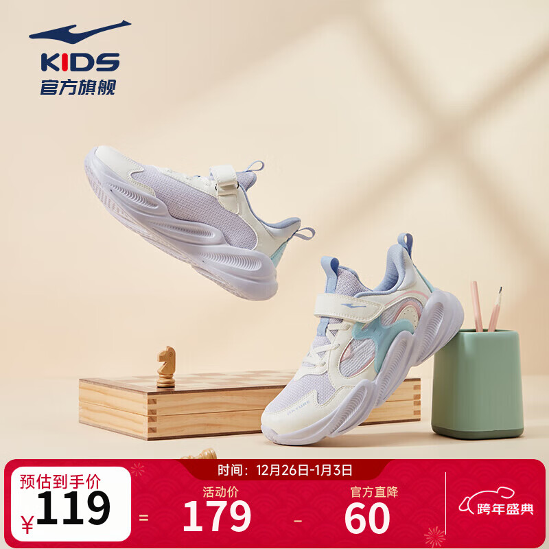 鸿星尔克儿童运动鞋男女童秋季新款网格拼接中大童学生休闲跑步鞋丨川行 霓裳紫/微晶白 -偏小1码 36