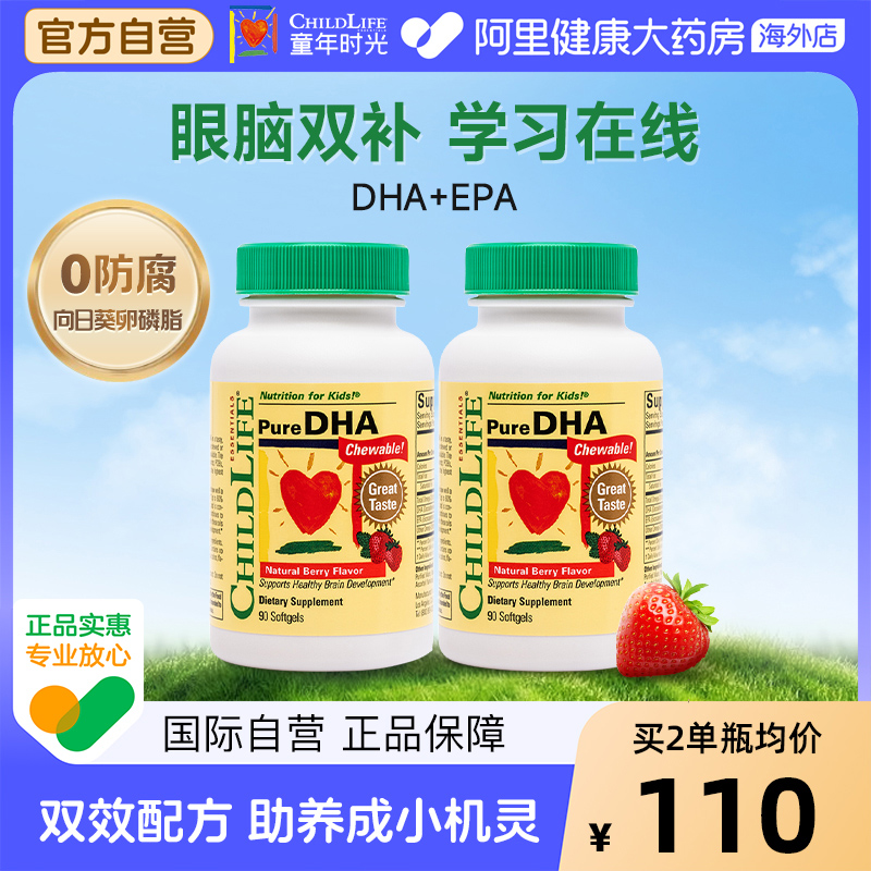 【眼脑同补】ChildLife童年时光小金珠鱼油DHA*2瓶(6个月-18岁)