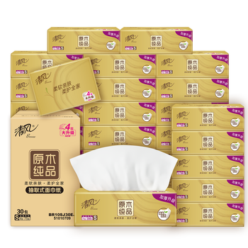 清风抽纸30包加厚300张餐巾纸面巾纸卫生纸大包擦手纸批发整箱g 4层 75抽*30包