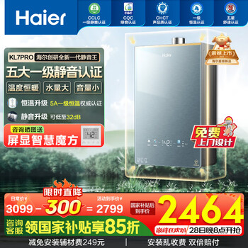 海尔(Haier)燃气热水器16升天然气家用无级变频水伺服恒温增压瀑布洗下置密闭稳燃舱WiFi一级恒温静音王KL7pro 16L 【KL7pro】全新升级静音王