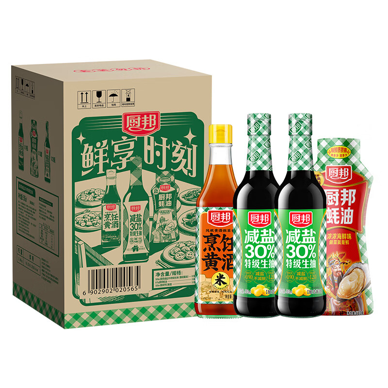 厨邦酱油 减盐系列 减盐酱油500ml*2+蚝油610g+烹饪黄酒500ml