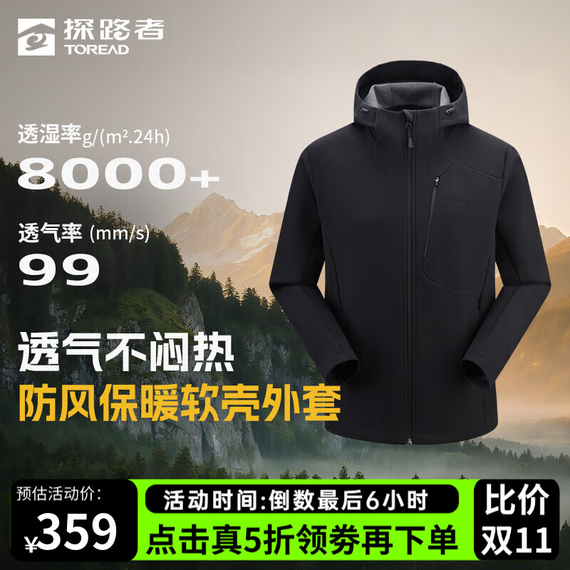 探路者(TOREAD)软壳衣户外登山徒步郊游防风外套防泼水高弹舒适休闲男女款外套 黑色-男款-TAEEBN91741 L