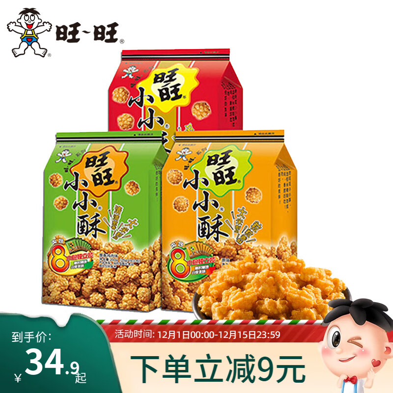 旺旺 小小酥200g*3包(原味+黑胡椒+葱香鸡肉)休闲零食小吃酥脆点心